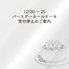 12/20~25 バースデーホールケーキ受付停止のご案内【千代が丘・覚王山】