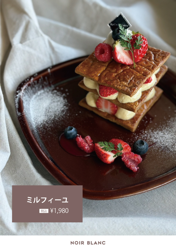 3/9(月)より販売開始(イートイン限定) 大人気メニューが戻ってきました✨ 『ミルフィーユ』🍓¥1,980(税込) サクサクのパイに、カスタードと生クリーム、 国産いちごをたっぷりと重ねました。 フルーツは季節のものを使用します(今はいちごです)。 ぜひご賞味くださいませ🥄 ——————— 【ノワールブラン】 📍名古屋市千種区千代が丘 6-10 ———————