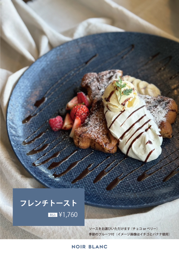 3/9(月)より販売(イートイン限定) 『フレンチトースト』¥1760(税込) 季節のフルーツ ソースは選択可 (チョコorベリー) ぜひご賞味くださいませ🥄 ——————— 【ノワールブラン】 📍名古屋市千種区千代が丘 6-10 ———————
